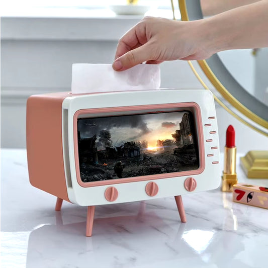 Creative Cartoon TV Shape Tissue Box Mobile Phone Holder Stand Home Living Room Office Toilet Tissue Box Kawaii Desktop Decor
